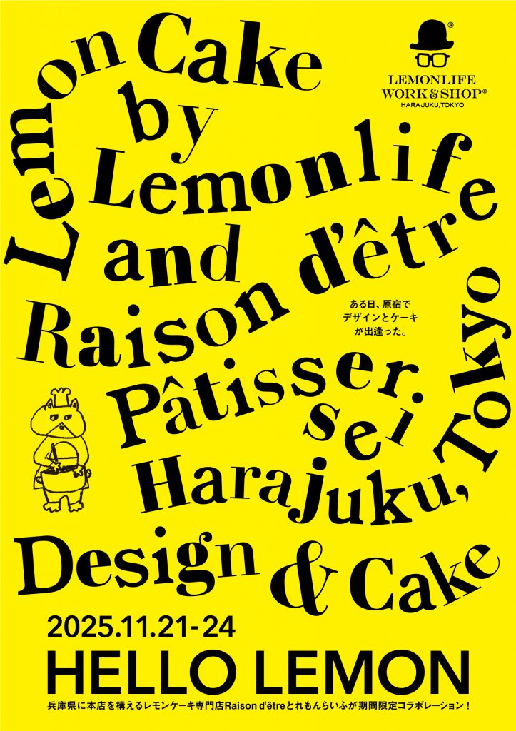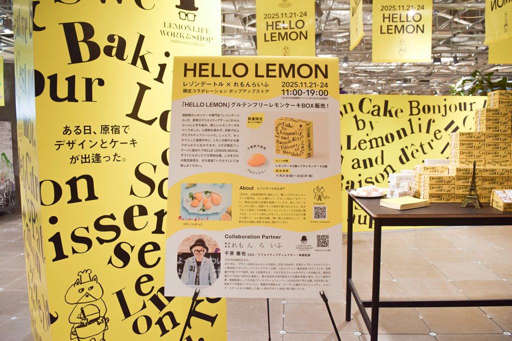 11/21(金)~11/24(月)POP UPショップ「HELLO LEMON」をれもんらいふオフィスのレンタルPOP-UPスペース「L SPACE」にて開設。そこで販売されるレモンケーキの限定ビジュアル・パッケージのデザインを担当。「見てかわいい・食べて幸せ」そんな気持ちを届ける限定デザインに仕上げた。